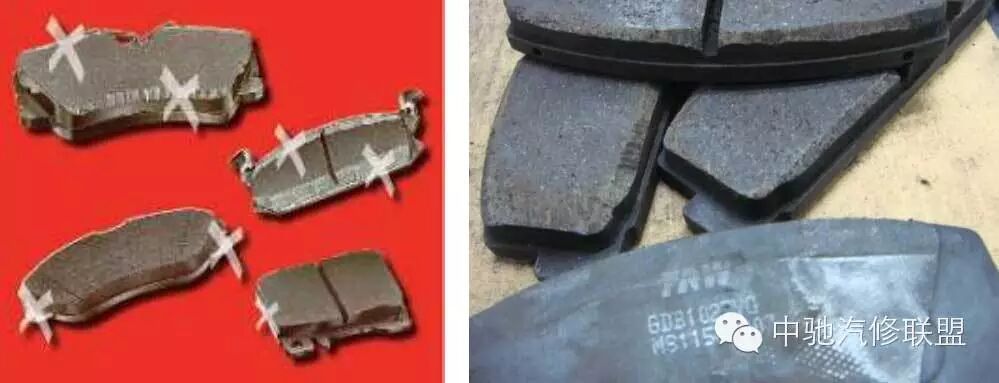 “錐形”摩擦片的主要表現(xiàn)形式為摩擦片左右磨損程度不一致,它會(huì)造成在制動(dòng)過(guò)程中制動(dòng)力不均勻并且會(huì)產(chǎn)生噪音,形成該故障的主要原因?yàn)橹苿?dòng)卡鉗變形、卡鉗卡滯,卡鉗的制動(dòng)間隙過(guò)大,在更換此類摩擦片時(shí),請(qǐng)先確認(rèn)制動(dòng)卡鉗的工作情況